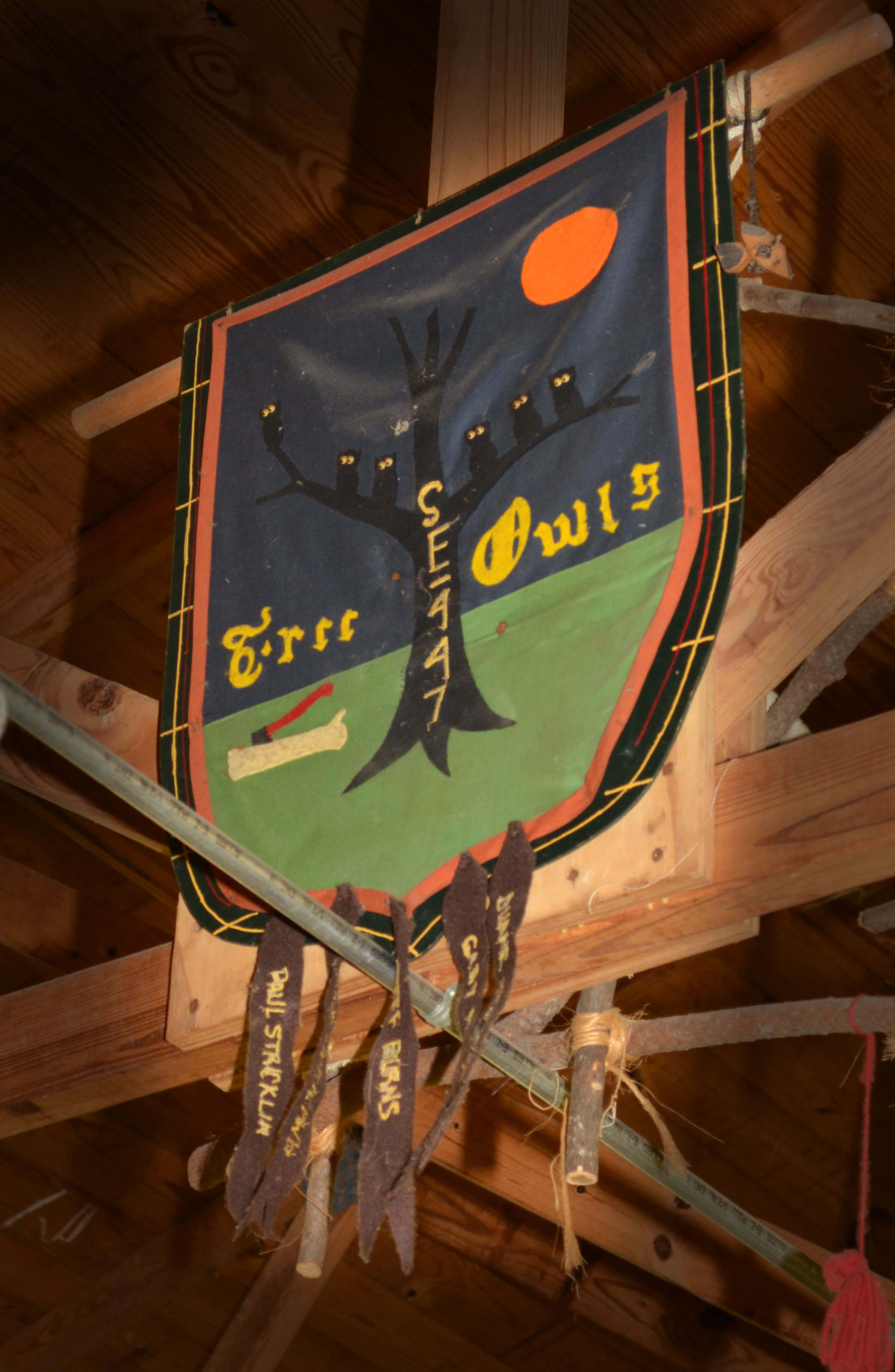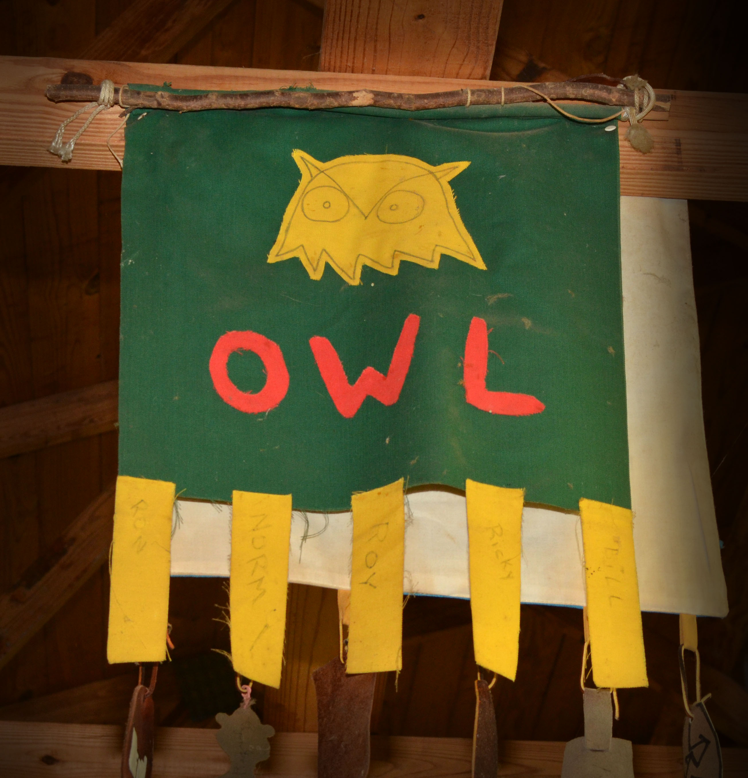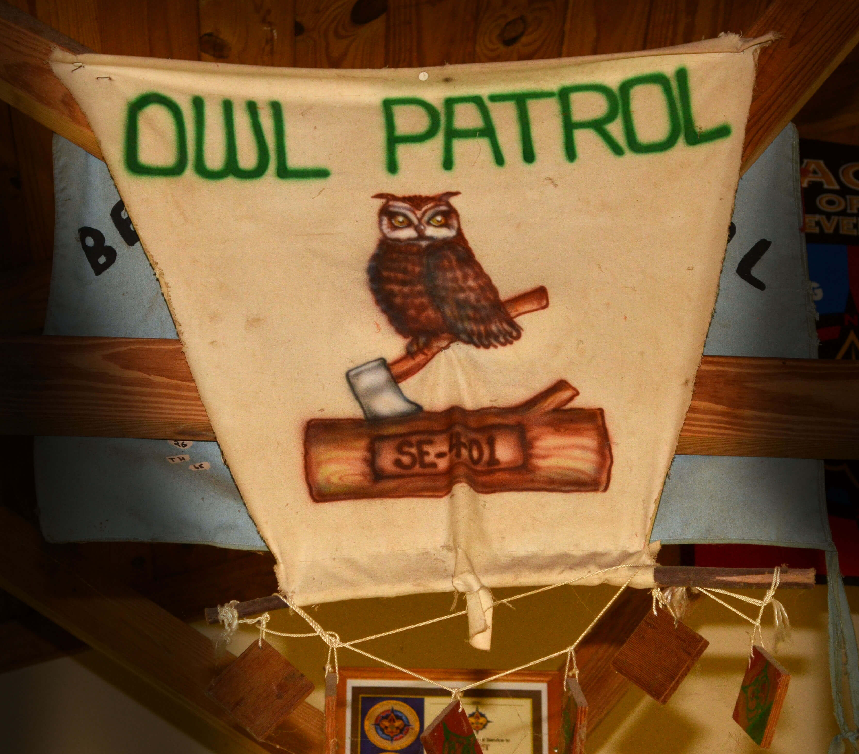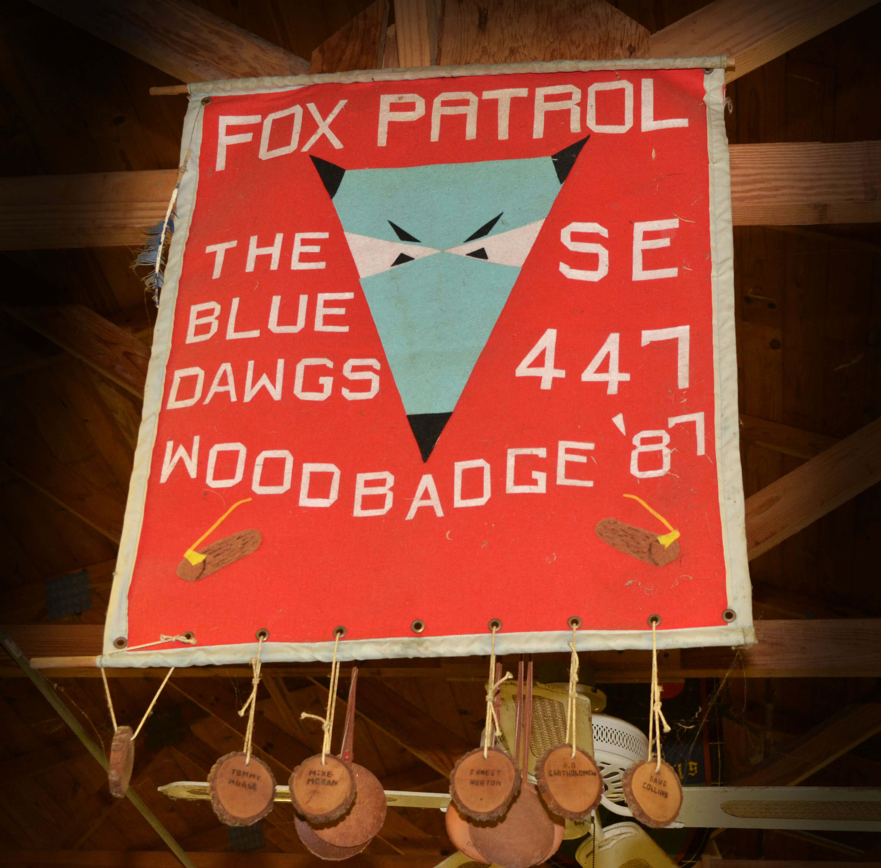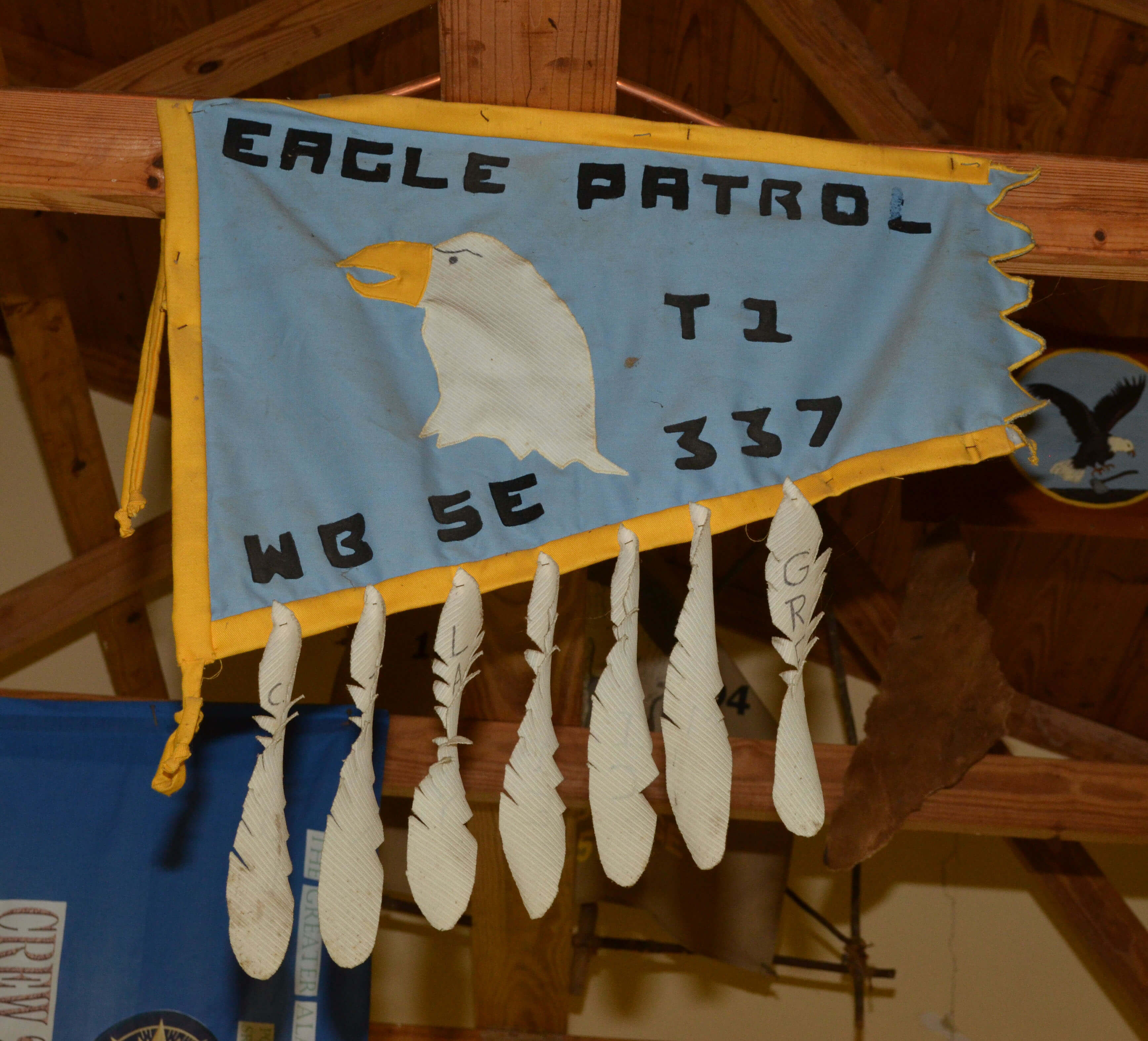 The rafters of the dining hall at Camp Jackson are filled with patrol flags from past courses and before they fall apart or get removed I wanted to make sure that they are documented and preserved electronically. Here are the flags.